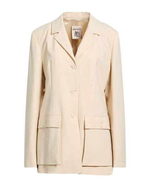 SEMICOUTURE. blazer de botonadura sencilla, tejido, tejido elástico, monocolor, sin aplicaciones, cuello con solapas , manga larga, interior forrado, cierre con botones, bolsillo de fuelle, limpiar en seco, no lavar con lejía , no secar en secadora. 53% Poliéster, 43% Lana Virgen, 4% Elastán. Color: neutro