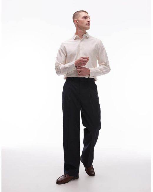 Pantalones y chinos de Topman Talle estándar Trabillas para cinturón Detalle de pliegues Bragueta oculta Bolsillos funcionales Pernera ancha Color: negro