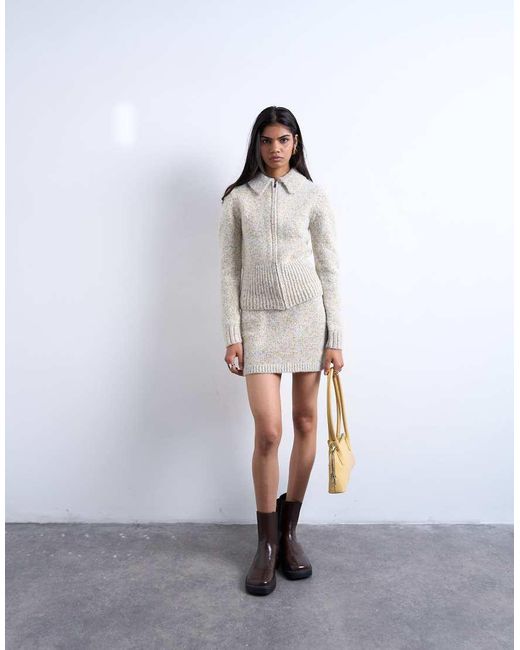 Faldas de Topshop Esta falda está confeccionada con un tejido de punto grueso y presenta un acabado moteado. Cuenta con una cintura elástica de talle alto y ribetes acanalados. Su corte es slim. Color: blanco