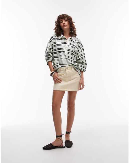 Minifalda Vaquera Muy Corta Caqui A Rayas De - Blanco
