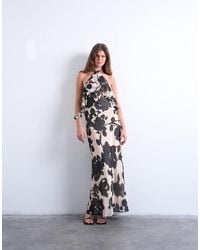 TOPSHOP Vestido Midi De Cuello Halter Con Estampado Floral Y Diseño De Capas En Contraste De de mujer de color blanco