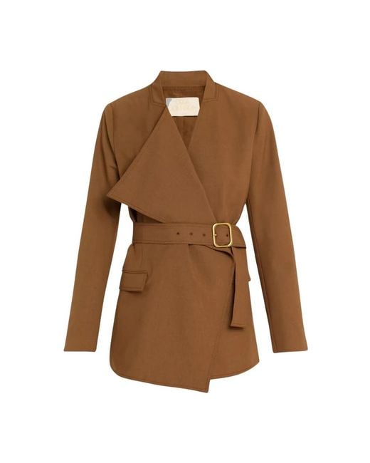 La Chaqueta Drapeada Zehra de Ulla Johnson combina la sastrería escultural con una silueta envolvente drapeada. Su cinturón integrado y el dobladillo asimétrico crean una declaración definida para lucir tanto en la ciudad como en la noche. Atributos clave: Marrón | Ceniza | Poliéster | Recuperación elástica | Drapeado estructurado | Cinturón de cintura ajustable integrado con hebilla de precisión | Un único bolsillo con solapa | Dobladillo asimétrico | Cierre envolvente drapeado | Cuello alto | Corte asimétrico | Silueta de corte nítido | Dimensiones y ajuste: Corte entallado | Cintura ajustable para una silueta personalizable | Composición y cuidado: 53% poliéster | 43% lana virgen | 4% elastano Color: marrón