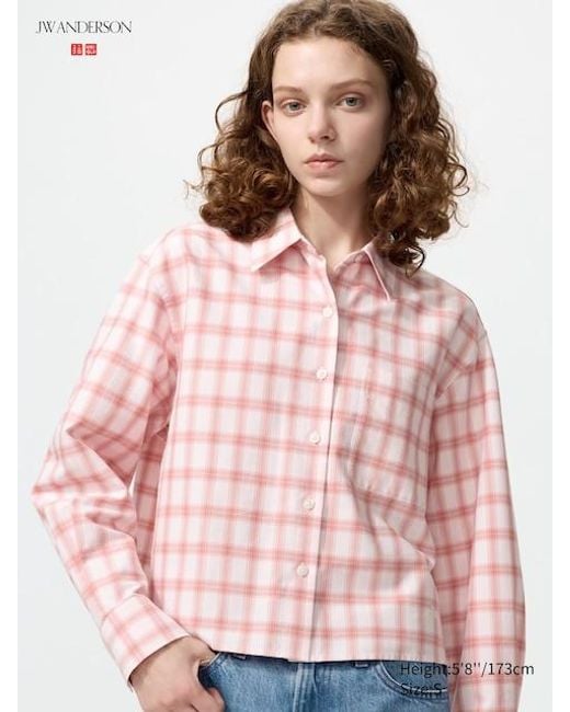 Short length with a boxy silhouette. Camisa oxford cuadrada cuadros ROSA XXS Color: rosa