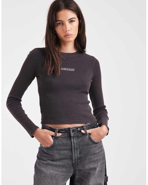 Tops de Vans Cuello redondo Manga larga Logo bordado Ajuste slim Color: gris