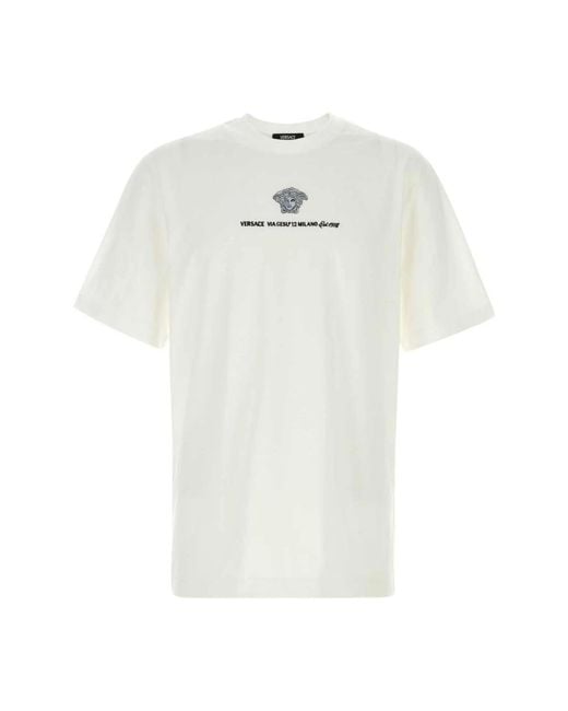 ¡Aprovecha las mejores rebajas! La camiseta Versace con logotipo bordado es una refinada camiseta de algodón con cuello redondo que realza los looks cotidianos con un sutil emblema de Medusa bordado. Atributos clave: Blanca | Algodón | Tejido transpirable | Tacto suave | Cuello redondo | Manga corta | Logotipo bordado | Bajo recto | Composición y cuidado: 100% algodón Color: blanco