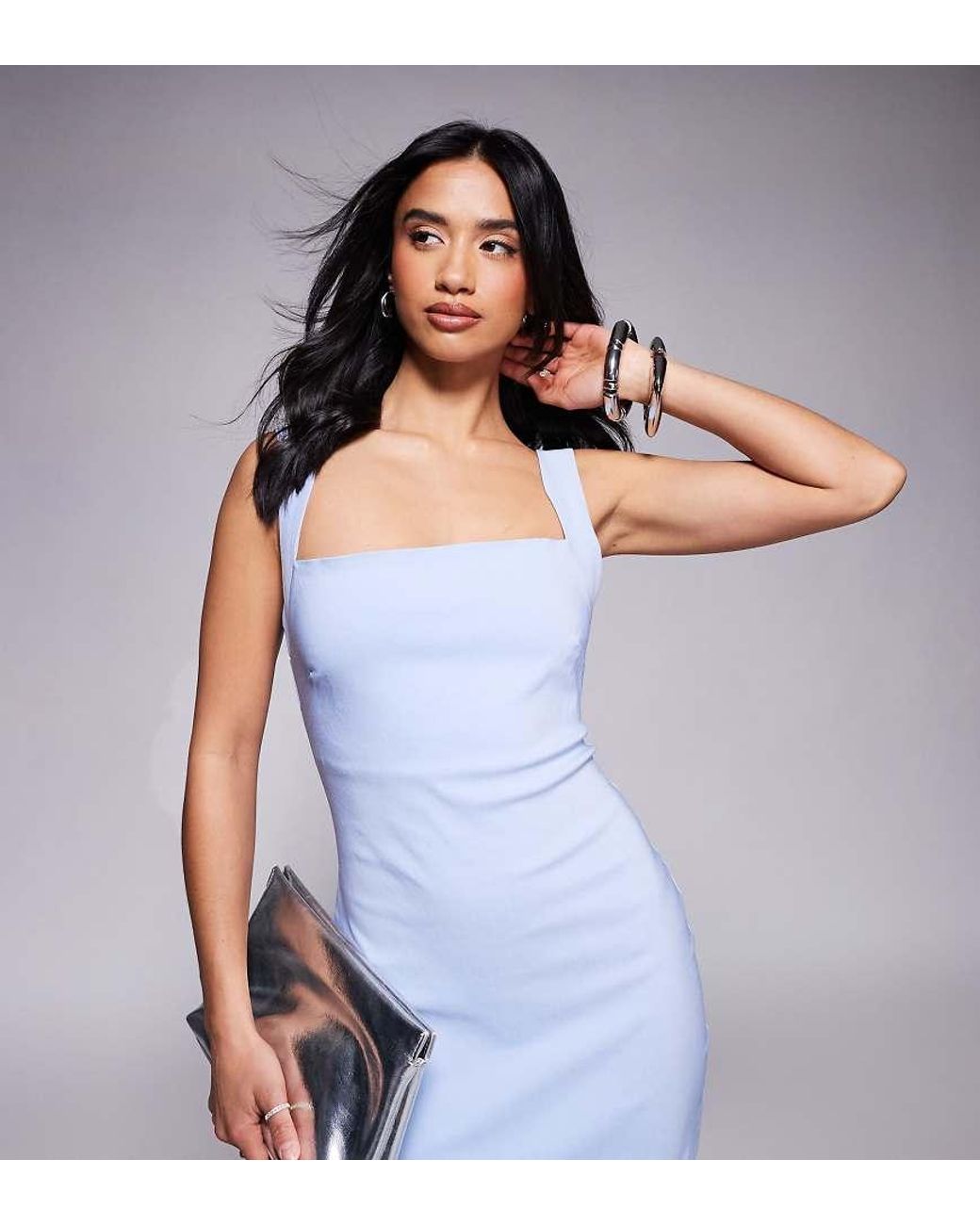 - Vestido Semilargo Con Escote Cuadrado Y Espalda Ancha De Bengalina De