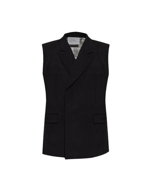 ¡Aprovecha las mejores rebajas! Eleva tu estilo con este chaleco de doble botonadura de Vtmnts. Confeccionado en lana virgen con una silueta de doble botonadura, este estilo cuenta con botones, un bolsillo de ojal, dos bolsillos con solapa, solapas de pico, una doble abertura trasera y hombreras desmontables. El tejido está compuesto por un 93% de lana virgen y un 3% de elastano. Las medidas del modelo son: altura de 193 cm, pecho de 95 cm, cintura de 82 cm y caderas de 93 cm. El modelo lleva la talla L. Color: negro