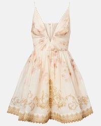 Zimmermann Vestido Corto Illuminate De Lino Y Seda Drapeado de mujer de color neutro