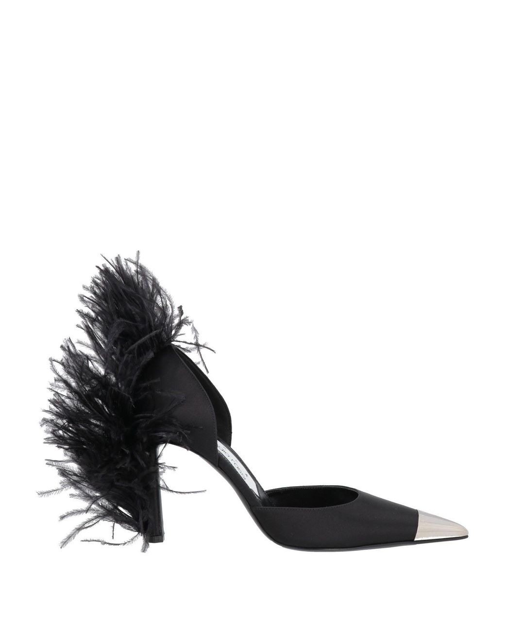 AREA x SERGIO ROSSI. zapatos de salón, raso, liso con aplicaciones, plumas, aplicaciones de metal, interior de piel, puntera estrecha, tacòn stiletto, suela de cuero, composición con partes de origen animal pero no textil. Cuero, Fibras textiles.