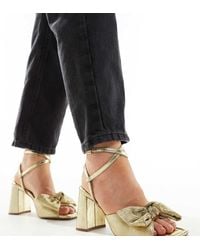 Asos Design Wide Fit Sandalias Doradas De Tacón Medio Con Detalle Anudado Hansel De de mujer de color blanco
