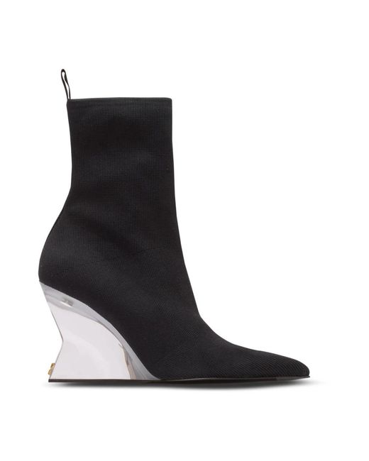 Los botines de cuña de punto Balmain combinan una cuña escultórica de plexiglás con una parte superior de punto tipo polaina para un calzado llamativo y elevado. Atributos clave: Negro | Poliamida | Estilo polaina | Punta afilada | Cuña de plexiglás | Dimensiones y ajuste: Altura del tacón: 9,5 cm | Composición y cuidado: 90% poliamida | 10% elastano Color: negro