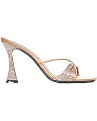 Visitar Miinto¡Aprovecha las mejores rebajas! Las Lust Mules de D'accori son mules de satén sin cordones que se definen por tiras adornadas con cristales y un tacón escultural cubierto, diseñadas para ocasiones de noche