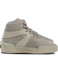 Visitar Miinto¡Aprovecha las mejores rebajas! Las Aerobic Low Sneakers de Fear Of God en gris claro ofrecen un diseño elegante confeccionado en piel de becerro de primera calidad, perfectas para el uso diario. Características