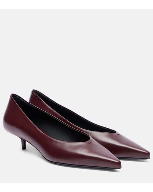 Parte superior: piel de becerro. Forro: piel de cabra. Suela: plantilla y suela de piel. Puntera: en punta. Hecho en Italia. Incluye: bolsa protectora, puntas de tacón adicionales, caja para zapatos. Nombre del color del diseñador: Bordeaux. Color del artículo: borgoña. Color: morado