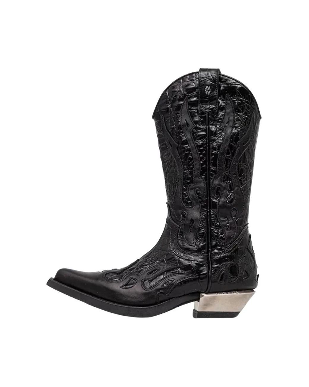 ¡Aprovecha las mejores rebajas! New Rock West Nomada Y Firence combina una silueta western con detalles de inspiración rock, presentando una parte superior de cuero repujado y un tacón plateado metálico. Diseñado para un uso diario destacado, combina una construcción duradera con una fácil entrada con cremallera lateral. Atributos clave: Negro | Plata | Cuero | Suela de goma duradera y resistente a los daños | Cierre de cremallera lateral | Firme contrafuerte del talón para soporte del tobillo | Silueta western/cowboy | Patrón repujado en la parte superior | Tacón plateado metálico | Dimensiones y ajuste: Altura del tacón: 4 cm | Longitud de la plantilla (talla 38): 26 cm | Composición y cuidado: Parte superior: Cuero natural | Forro: Cuero natural; Material sintético | Suela: Material sintético (goma) Color: negro