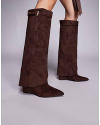 Public Desire Botas Por La Rodilla Marrones Con Caña Plegada Y Tacón De Cuña De Antelina Kola De de mujer de color marrón