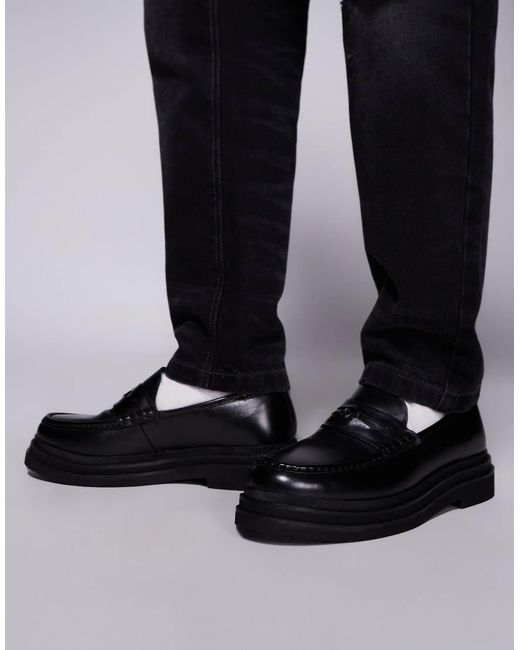 Mocasines Penny Negros De Cuero Brooklyn De de hombre