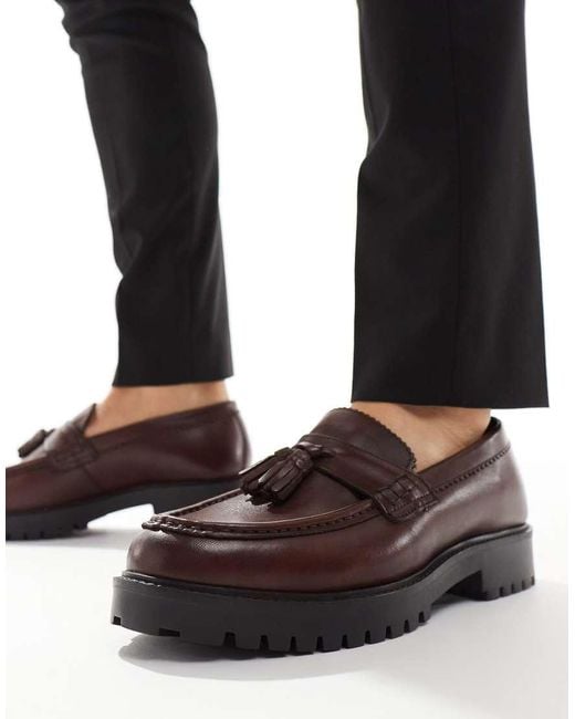 Mocasines Negros Con Borlas De Cuero Abatanado De de hombre