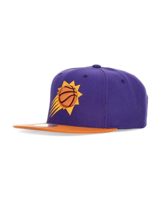 Promos exclusives ! Rehaussez votre style avec cette casquette à visière plate Mitchell & Ness célébrant l'équipe de basketball des Phoenix Suns. Arborant un logo Phoenix Suns en 3D brodé sur le devant et le logo Mitchell & Ness à l'arrière; cette casquette est un accessoire incontournable. Fabriquée en 85% acrylique et 15% laine avec une fermeture snapback ajustable pour un ajustement parfait. Coloris : bleu