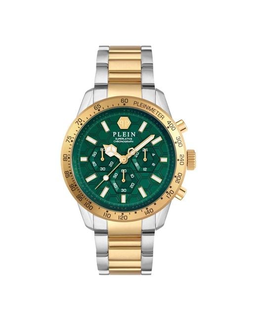 Promos exclusives ! Découvrez la Chrono Pleinmeter, une montre sophistiquée de Philipp Plein qui fusionne une esthétique sportive avec une technologie de précision. Cette montre est çue pour ceux qui apprécient un mélange d`élégance contemporaine et intemporelle. Caractéristiques clés: Vert | Silicone | Chronographe de précision | Fonctions de chronographe intégrées | Motifs hexagonaux sur le cadran | Marque distinctive sur le bracelet | Composition et entretien: Nettoyer avec un chiffon doux. Coloris : métallisé