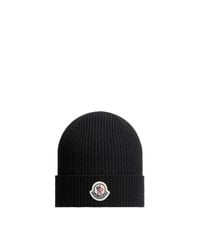Consulter FARFETCHBleu cobalt laine vierge mélangée maille nervurée logo imprimé sur le devant bord incurvé bord retroussé Size: Taille unique. Gender: Unisex. Material:laine vierge/polyester. Coloris : bleu