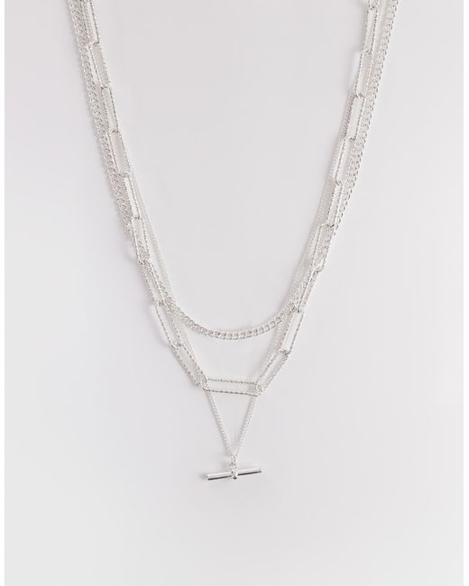 Collier délicat à 3 rangs avec barre en t - argenté femme de coloris blanc