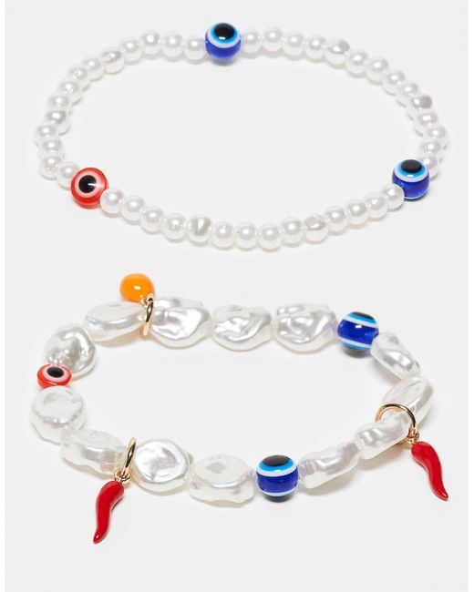 Accessoires par ASOS DESIGN Lot de deux Chaînes de perles Fausses perles Style à enfiler. Coloris : blanc
