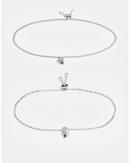 Accessoires par ASOS DESIGN Lot de deux Chaînes variées Fausse perle Longueur réglable Fermoir perle. Coloris : gris