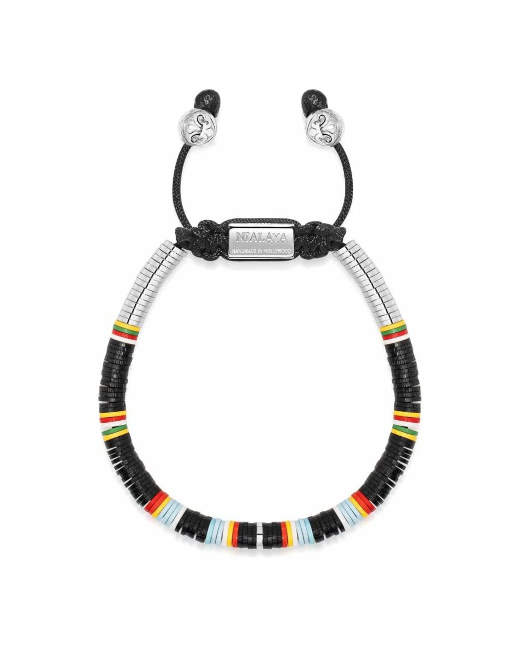 Promos exclusives ! Le bracelet Chakra Disc de Nialaya associe des perles de disque en vinyle multicolores à un fermoir à cordon coulissant en acier inoxydable pour un porté quotidien polyvalent. Fabriqué à la main à Los Angeles, il se superpose facilement et offre un ajustement sûr et réglable. Principales caractéristiques : Gris | Multicolore | Noir | Vinyle | Construction en fil de nylon | Fermoir de sécurité en acier inoxydable | Fermeture à cordon coulissant réglable | Ouverture/fermeture par mécanisme de traction | Superposable – à porter seul ou avec d'autres | Perles multicolores en forme de disque | Perles d'accent argentées pendantes | Esthétique bohème et polyvalente | Finition faite à la main | Dimensions et ajustement : Ajustement réglable grâce au fermoir à cordon coulissant en acier inoxydable | Composition et entretien : 100 % nylon | Vinyle | Acier inoxydable