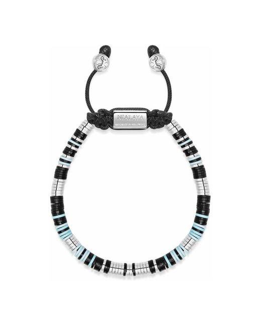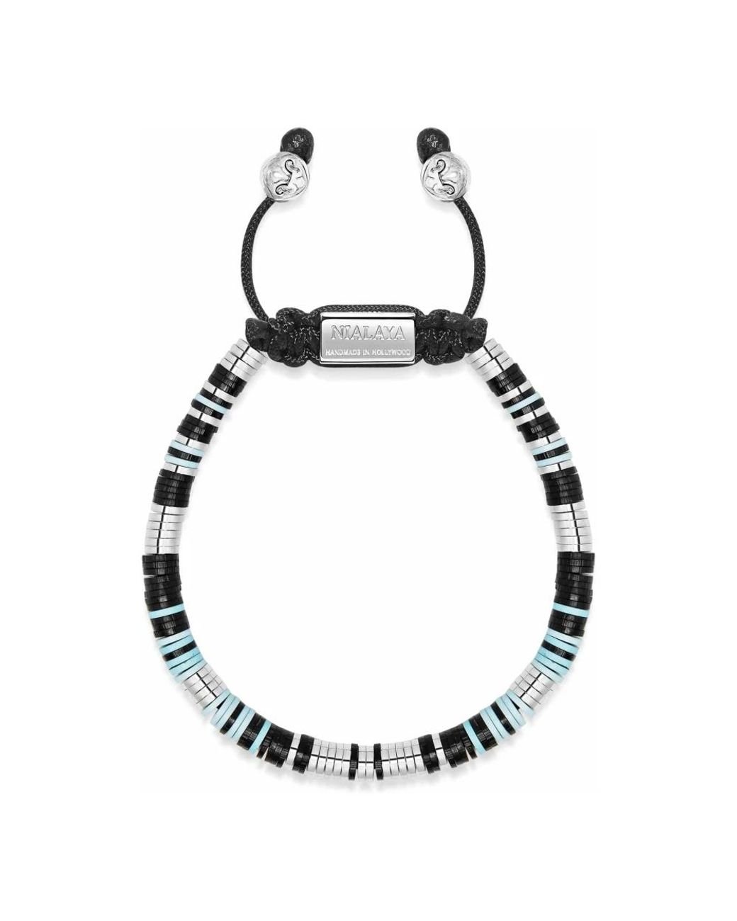 Promos exclusives ! Le bracelet Blue Eclipse Disc de Nialaya associe des perles de disque en vinyle multicolores de 5 mm à des éléments en acier inoxydable pour un bracelet ajustable fait à la main, qui se porte aussi bien seul que superposé. Caractéristiques principales : Gris | Argenté | Noir | Multicolore | Vinyle | Noyau en nylon | Cordon de serrage réglable en acier inoxydable | Fermeture coulissante activée en tirant sur les perles | Perles de disque en vinyle multicolores de 5 mm | Conception de perles en forme de disque | Style bohème mais polyvalent | Fait à la main à Los Angeles | Dimensions et ajustement : M (17 cm) | L (18 cm) | XL (19 cm) | Ajustement réglable via un cordon de serrage en acier inoxydable | Composition et entretien : 100 % nylon | Perles de disque en vinyle | Éléments en acier inoxydable Coloris : noir