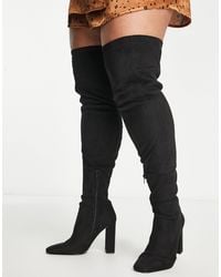 ASOS Curve - keely - cuissardes à talon carré - micro femme de coloris noir