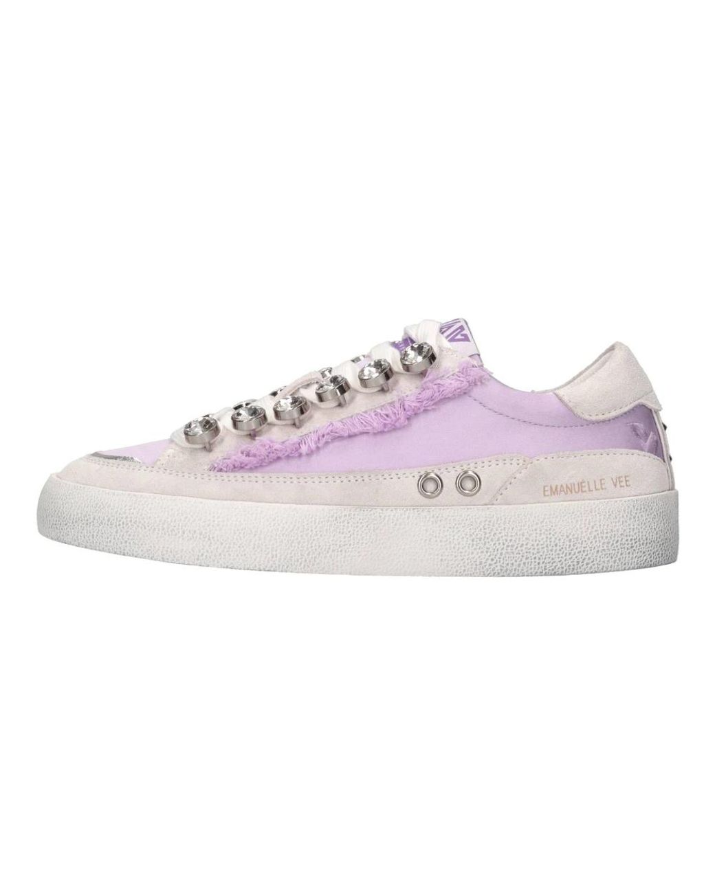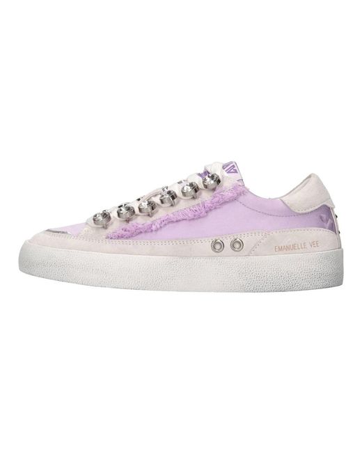 La sneaker Emanuelle Vee associe cuir et tissu avec des détails en strass pour un look décontracté affirmé. çue pour être portée au quotidien, elle repose sur une semelle extérieure en caoutchouc pour une adhérence fiable. Caractéristiques principales : Violet | Lilas | Cuir | Semelle extérieure en caoutchouc | Ornements en strass | Tige en cuir et tissu mélangés | Composition et entretien : Cuir | Tissu | Strass | Caoutchouc Coloris : violet