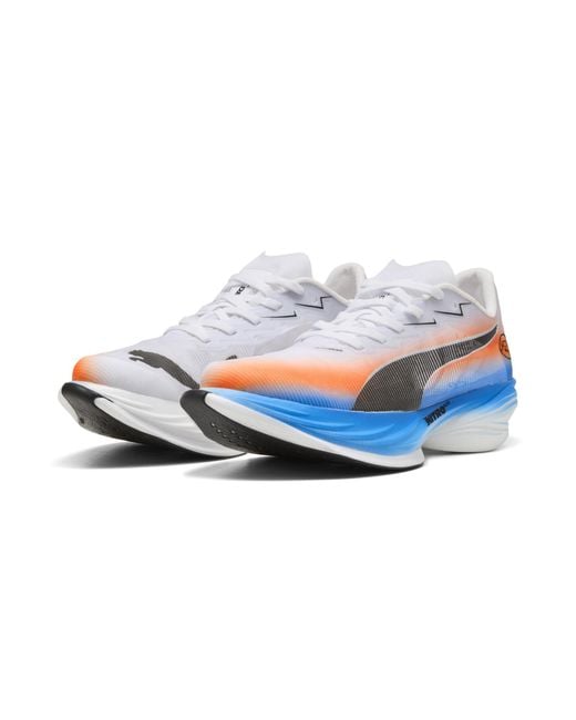 HISTOIRE DU PRODUIT Véritable secousse sismique dans le monde du running sur route, la Fast-R NITROTM Elite 3 est la chaussure idéale pour pulvériser tes records personnels, du 5k au Marathon. La nouvelle semelle extérieure en mousse NITROTM Elite te procure un retour d'énergie explosif alors que la plaque PWRPLATE en fibre de carbone te propulse à toute allure jusqu'à la ligne d'arrivée. Ce n'est pas tout : la semelle extérieure en caoutchouc PUMAGRIP te permettra de donner le meilleur de toi-même quelles que soient les conditions météos. Pulvérise ton record personnel avec la Fast-R NITROTM Elite 3. Cette version célèbre la célèbre course à pied japonaise avec un concept de couleurs unique, pour que tu te puisses te démarquer sur la route. CARACTÉRISTIQUES + AVANTAGES NITROTM ELITE : mousse innovante infusée à l'azote pour un retour d'énergie exceptionnel, plus de vitesse et un confort longue distance PWRPLATE : plaque en fibre de carbone sur toute la longueur pour une propulsion puissante et une efficacité taillé pour l'élite LÉGÈRETÉ : Les tissus ULTRAWEAVE ultra légers et extensibles dans tous les sens réduisent le poids et la friction pour te permettre de te concentrer sur des mouvements plus rapides et plus puissants PUMAGRIP : semelle extérieure en caoutchouc composite résistant pour une adhérence infaillible sur plusieurs surfaces DÉTAILS Coupe : Régulière Bout : Arrondi Fermeture : Fermeture à lacets Talon : Talon plat Amorti : maximum Dénivelé talon-pointe : 8 mm Hauteur de semelle : 40 mm/32 mm Pronation : Neutre Durée de vie : 150 km. Coloris : bleu