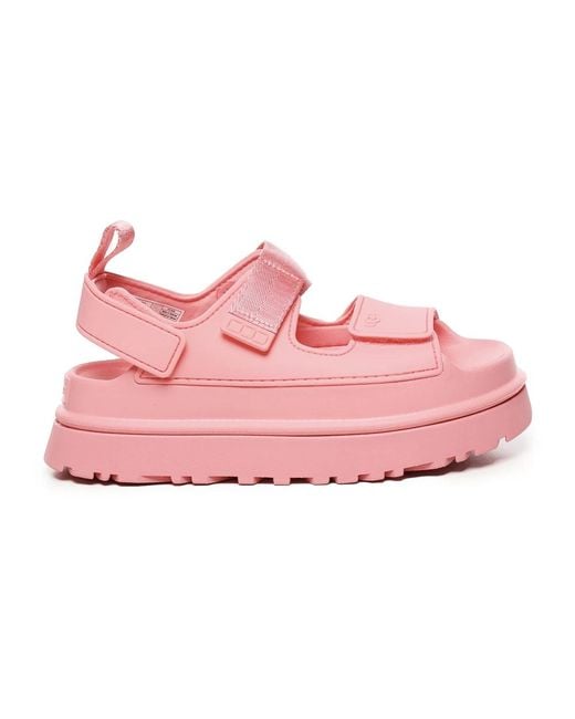 Rehaussez votre style estival avec ces sandales plates UGG pour femmes. Dotées d'une tige en TPU fabriquée à partir de fibres de polyester, d'une fermeture à scratch, d'une semelle et d'une semelle intermédiaire en EVA de canne à sucre, d'un bracelet en tissu et de brides en fibre de polyester dans une belle couleur rose.