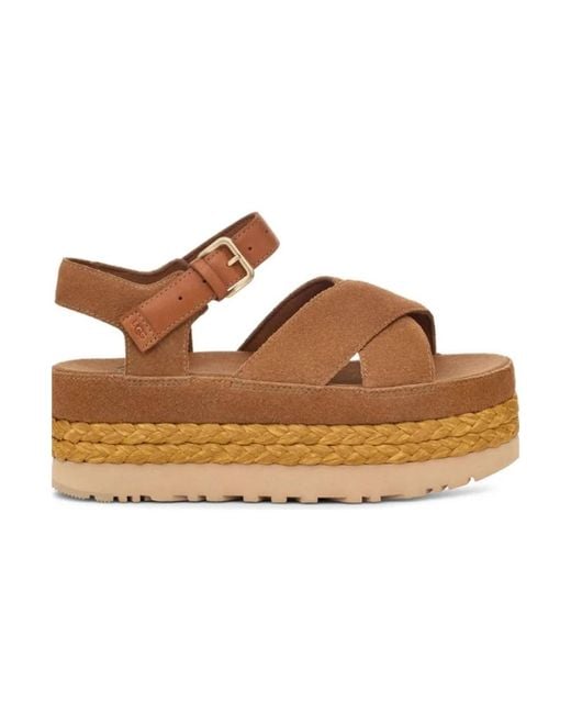 Promos exclusives ! Sublimez votre style estival avec ces sandales plates à bride cheville chics, çues par Ugg. Pensées pour le confort et le style, elles présentent une empeigne en cuir et une semelle Eva, parfaites pour les sorties décontractées. Caractéristiques clés: Marron | Cuir | Bride cheville | Composition et entretien: Empeigne en cuir | Intérieur en polyester | Semelle EVA
