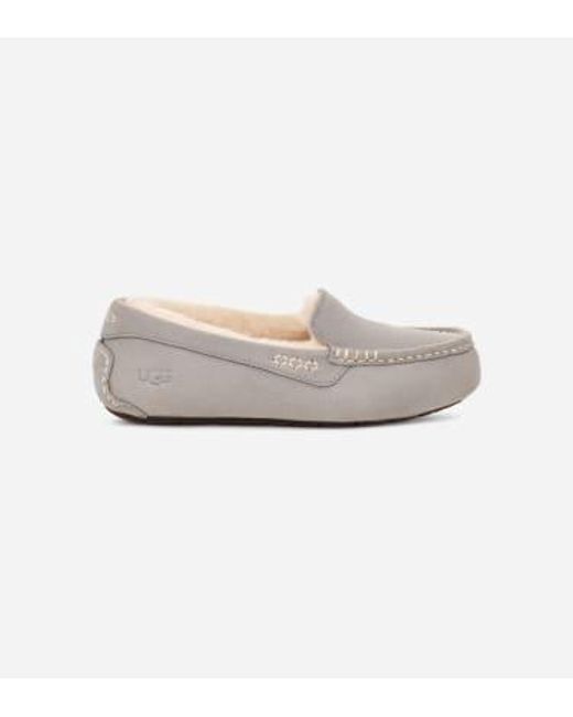 Il y a des chaussons. Et il y a les chaussons parfaits. Chez UGG™, on vit dans l’univers des chaussons parfaits. Un monde dans lequel vos pieds nagent dans le maintien, le confort et le bonheur. Bienvenue. Le chausson Ansley est tellement parfait que vous pourriez oublier de le retirer en partant de chez vous. Il dispose d’une doublure en laine aussi confortable qu’un nuage et d’une semelle extérieure adaptée à toutes les surfaces. Ce chausson coche toutes les cases. Envie d’en savoir plus ? Ajoutez-le à votre panier pour le découvrir par vous-même. Ce produit a été fabriqué dans une usine qui soutient les femmes intervenant dans notre chaîne d’approvisionnement par le biais de HERproject. Cette initiative collaborative crée des partenariats avec des marques comme la nôtre pour valoriser et former les femmes sur le lieu de travail. | Chausson UGG Ansley pour femme | UGG UE in Light Grey, Taille 37, Daim Coloris : gris