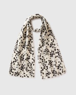 Benetton, Écharpe En Lin Mélangé À Motifs, Taille, Crème, Femme - Noir