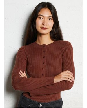 Top Col Rond En Coton Et En Laine Mélangés Femme - Marron