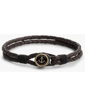 Bracelet En Cuir Noir À Breloque Nautique Plaqué Ion - Noir