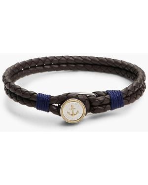 Bracelet En Cuir Marron À Breloque Nautique Plaqué Or - Blanc