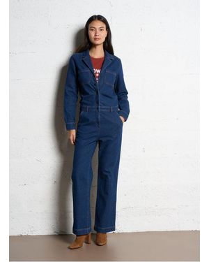 Combinaison Droite En Coton Mélangé Femme - Bleu