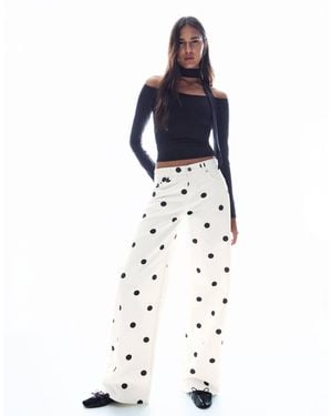 Pantalon duveteux coupe bouffante - beige imprimé - Blanc