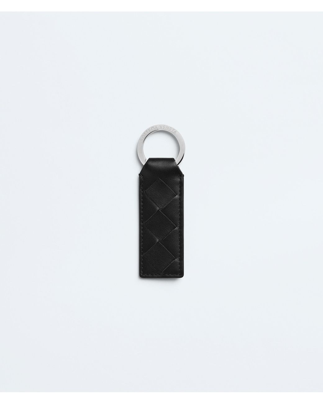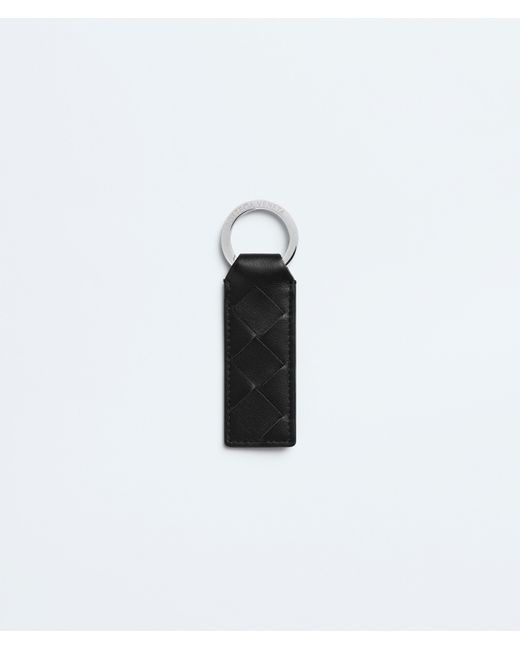 Porte-clés avec languette en cuir intrecciato avec un crochet en métal. Compatible avec les clips de personnalisation. Couleur : Black. Léments métalliques : Finition Silver. 100 % Cuir De Veau. Coloris : blanc