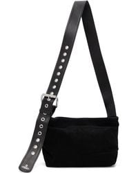 Consulter SSENSESac messager noir en cuir synthétique grainé. Poignée de transport amovible · Coussinet à la bandoulière amovible · Ferrure à logo à l'avant · Clous protecteurs à la base · Fermoir aimanté ·