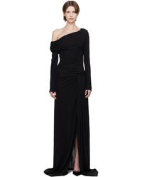 Consulter FARFETCHMagenta foncé design asymétrique fermeture dissimulée sur le côté design asymétrique à une épaule manches longues détail drapé taille ajustée ourlet droit coupe longue Size: 6. Gender: Female. Material:viscose. Coloris : violet