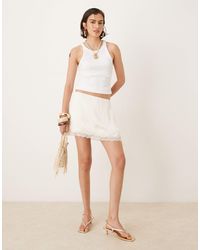 Abercrombie & Fitch Mini jupe-short à taille mi haute avec bords en dentelle femme de coloris neutre