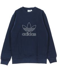 Consulter AmazonBleu indigo à enfiler logo Trefoil signature capuche à lien de resserrage poche plaquée sur le devant manches longues ourlet et bords nervurés Size: S. Gender: Male. Material:coton. Coloris : bleu