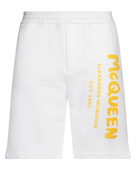 MCQUEEN. shorts de sport, jersey bouclette, couleur unie avec imprimé, logo de la marque, taille haute, taille à élastique, fermeture avec cordon de serrage, laver en machine, ne pas utiliser de javel, ne pas sécher en machine. 100% Coton. Coloris : blanc