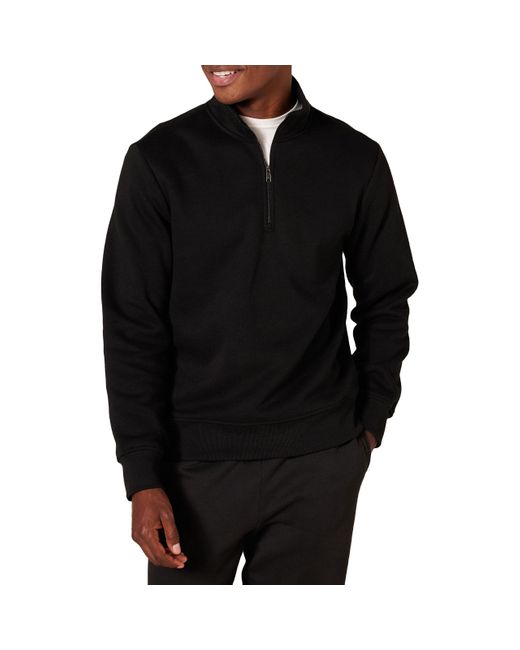 Chandail en Molleton à ches Longues et à Fermeture éclair 1/4 pour homme de coloris noir