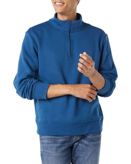 Sweat-shirt en molleton à manches longues et fermeture éclair 1/4 pour homme de coloris bleu